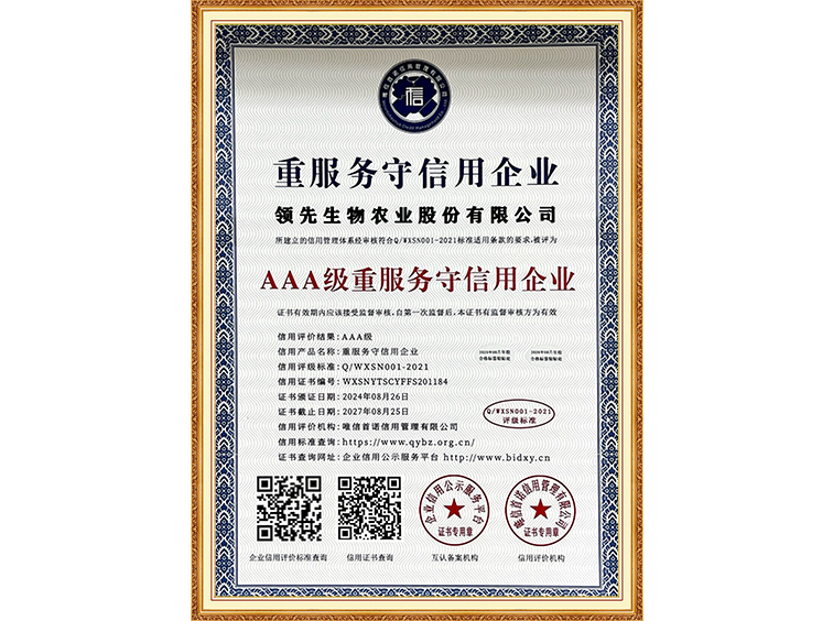 AAA级重服务守信用企业