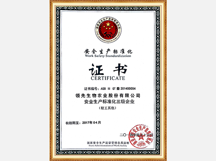 安全生产标准化企业证书