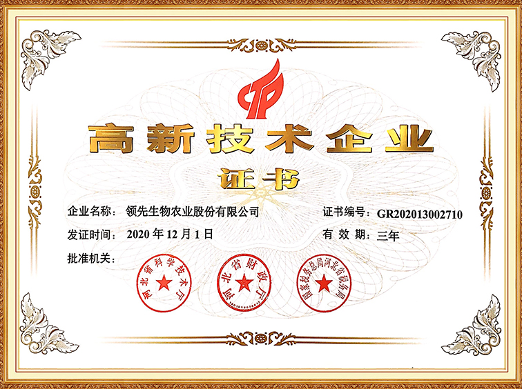 高新技术企业证书