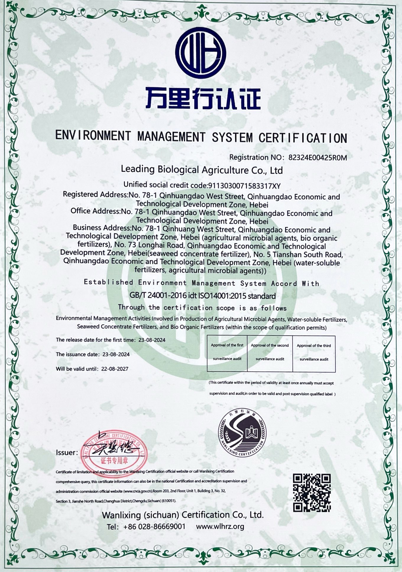 环境管理体系认证证书